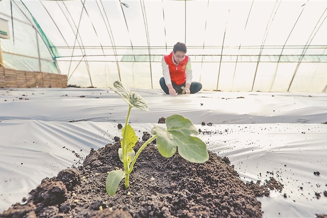友誼農(nóng)場(chǎng)水稻大棚種起“百斤”瓜