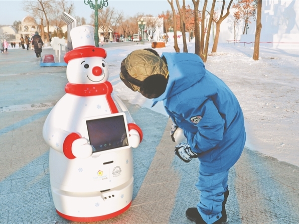 智能機(jī)器人在太陽島雪博會(huì)上崗