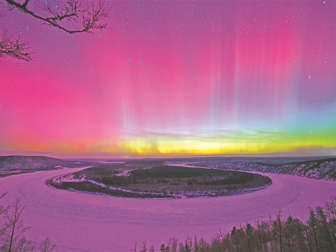 北極光新年綻放龍江第一灣