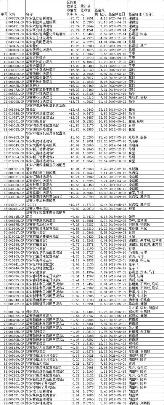 其中,基金經(jīng)理謝昌旭所管理的3只基金墊底,華安醫(yī)療創(chuàng)新混合(008359)、華安新絲路主題股票(001104)、華安雙核驅(qū)動(dòng)混合(006121)節(jié)后分別虧損25.75%、24.65%、23.74%。