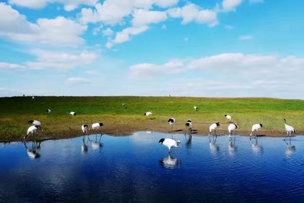 丹頂鶴之所以可以在齊齊哈爾的街上“溜達(dá)”,那也是有原因的,好生態(tài)為“溜達(dá)鶴”創(chuàng)造了優(yōu)勢(shì)條件。齊齊哈爾扎龍國(guó)家級(jí)自然保護(hù)區(qū)是我國(guó)以鶴類等大型水禽為主的珍稀水禽分布區(qū),是世界上最大的丹頂鶴繁殖地。這里葦草肥美、魚蝦豐盛,是鳥(niǎo)類繁衍的天堂,也是丹頂鶴的故鄉(xiāng)。每年有6種珍稀鶴類在此繁殖停歇,素有“鶴鄉(xiāng)”之稱。