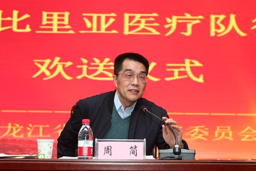 周簡書記代表國家衛(wèi)生健康委,以“再武裝、再出發(fā)、再戰(zhàn)斗”為題,從思想準備、組織準備、技術準備、物資準備等四個方面向醫(yī)療隊寄語。他指出,中國對外衛(wèi)生援助淵遠流長,在半個多世紀的時間里,黑龍江省共派出1030人次醫(yī)務工作者參與了援外醫(yī)療工作,積極踐行國際人道主義精神,勇于克服種種困難,砥礪前行,為受援國留下了“帶不走的醫(yī)療隊”。醫(yī)療隊促進了當?shù)蒯t(yī)療衛(wèi)生事業(yè)的發(fā)展,有力地支持了我國的外交工作,為推進人類和平與發(fā)展的崇高事業(yè)做出了貢獻。當前,面對全球肆虐的新冠肺炎疫情,中非合作抗疫刻不容緩,醫(yī)療隊員面臨的任務更艱巨,但是使命光榮。