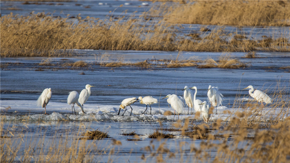 寶清縣七星河國家級自然保護(hù)區(qū)和東升自然保護(hù)區(qū)日前迎來了首批候鳥回歸。數(shù)萬只雁類及白琵鷺、丹頂鶴、東方白鸛等候鳥飛臨保護(hù)區(qū)停歇休養(yǎng),它們時(shí)而起舞歡歌,時(shí)而低頭覓食,為保護(hù)區(qū)增添了無限生機(jī)與活力。