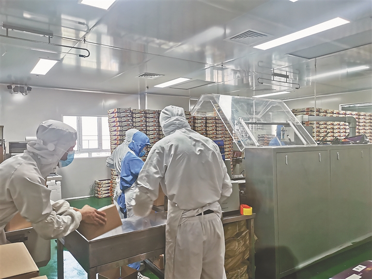 綏芬河市俄麥諾食品有限公司包裝車間。黑龍江日?qǐng)?bào)記者 董盈 杜懷宇攝