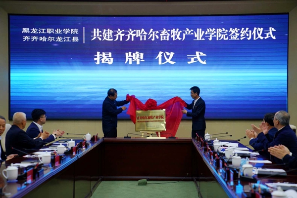 黑龍江經(jīng)濟(jì)網(wǎng)訊(李福山 王鴻儒 記者魏伯勤)為搭建校地校企合作平臺,聚焦產(chǎn)業(yè)人才短板,接軌應(yīng)用型院校人才培養(yǎng)體系,建立產(chǎn)業(yè)人才聯(lián)合培養(yǎng)機(jī)制,4月28日,黑龍江職業(yè)學(xué)院與龍江縣人民政府“共建齊齊哈爾畜牧產(chǎn)業(yè)學(xué)院”簽約儀式在齊齊哈爾市仙鶴賓館舉行。這次簽約是齊齊哈爾市“校企政”合作的一次有益探索,是產(chǎn)業(yè)人才培養(yǎng)、產(chǎn)教融合的新路徑、新載體,是推動齊齊哈爾全市畜牧業(yè)高質(zhì)量發(fā)展的一項(xiàng)重要舉措。