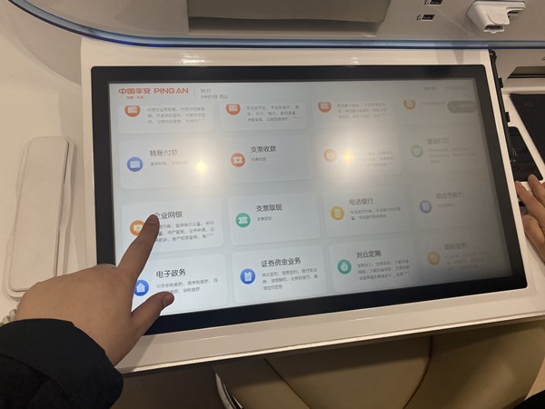 記者看到,智能網(wǎng)點既適老也適小。在互動體驗區(qū),由9塊顯示屏拼接而成的屏幕區(qū)格外引人注意。顯示屏分別顯示著網(wǎng)點的理財產(chǎn)品、營銷數(shù)據(jù)等,每15分鐘就會進(jìn)行一次更新。不僅如此,客戶還可以在這里玩游戲、拍照片。李權(quán)介紹,很多時候,客戶的焦慮來自等待,一些帶著孩子來辦理業(yè)務(wù)的客戶,最怕小朋友無聊,通過互動體驗區(qū),小朋友可以在屏幕前玩游戲,這樣客戶辦理業(yè)務(wù)時也能更安心?!拔覀兊姆?wù)區(qū)域用來滿足客戶日常業(yè)務(wù)辦理需求,而游戲、特色景點、交通、美食等混業(yè)信息的交互則能消除顧客的等候焦慮。”李權(quán)說道。