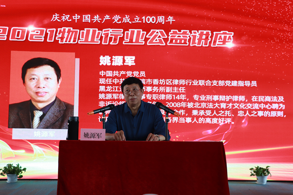 黑龍江省江山律師事務(wù)所律師副主任姚源軍做了《民法典所涉及物業(yè)行業(yè)的相關(guān)條款解讀》講座。姚源軍重點(diǎn)講解了《民法典》與物業(yè)管理、物權(quán)、合同、侵權(quán)責(zé)任及其他法律風(fēng)險(xiǎn)等內(nèi)容知識(shí);通過大量典型案例,圍繞物業(yè)管理涉及的法律問題, 以及行業(yè)經(jīng)營(yíng)中的風(fēng)險(xiǎn)點(diǎn)、法律條款、解決思路、案例實(shí)務(wù),全面介紹了《民法典》視角下的物業(yè)管理責(zé)任邊界等內(nèi)容,幫助與會(huì)人員系統(tǒng)的了解了物業(yè)管理相關(guān)法律法規(guī)體系。