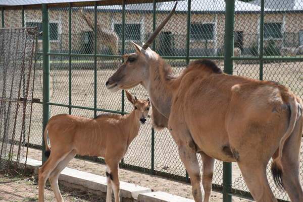 比起環(huán)尾狐猴媽媽的悉心照料,四月份在非洲草食動(dòng)物散放區(qū)新出生的雄性小羚羊就很令人擔(dān)心,因?yàn)槟懶〉男率謰寢尣粫?huì)照料孩子,所以它不讓自家娃近身,不給娃吃奶。飼養(yǎng)員看到這種情況采取了人工輔助的辦法,把奶擠出來(lái)讓小羚羊吃到初乳。雖然媽媽一直躲著自己,但是小羚羊堅(jiān)持要“親力親為”吃奶。飼養(yǎng)員就拿食物在前面引誘羚羊媽媽,讓它站立安穩(wěn)點(diǎn),時(shí)間長(zhǎng)一點(diǎn),小羚羊慢慢靠近就可以吃到母乳啦!現(xiàn)在大羚羊媽媽已經(jīng)完全能接受這個(gè)小家伙了,常常依偎在一起。解決了小羚羊的吃飯問(wèn)題后,小家伙就開(kāi)始茁壯成長(zhǎng),一天比一天活波可愛(ài)。