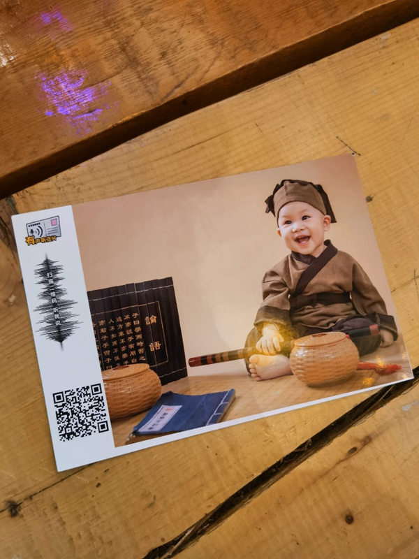 在這里,明信片不僅可以看,還能聽!館內(nèi)富有科技范兒的有聲明信片是最受歡迎的。用手機上傳照片,錄制一個30秒以內(nèi)的語音,這樣通過機器打印出來的明信片就有了新功能,只要用手機掃描明信片上的二維碼,就能聽到專屬寄語。