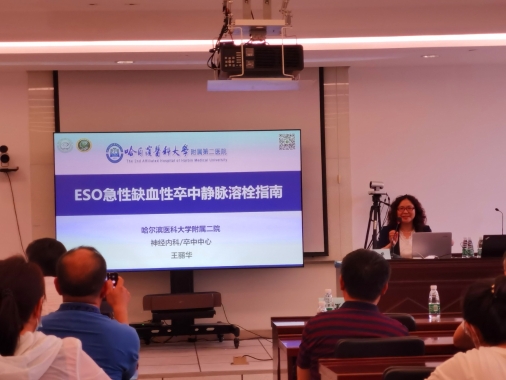 大會(huì)同時(shí)邀請(qǐng)到中國(guó)卒中??坡?lián)盟副主席、中國(guó)卒中中心管理指導(dǎo)委員會(huì)秘書(shū)長(zhǎng)、哈爾濱醫(yī)科大學(xué)附屬第二醫(yī)院王麗華教授為大家?guī)?lái)了《ESO急性缺血性卒中靜脈溶栓指南(2021)》,聚焦國(guó)際前沿。卒中中心秘書(shū)齊丹則以詳實(shí)的數(shù)據(jù)仔細(xì)分析了近兩年來(lái)中心的質(zhì)控工作,指出中心診療和流程的不足,為中心精細(xì)化管理提供了指導(dǎo)和依據(jù)。