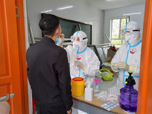 分到黑山鎮(zhèn)核酸采集的21名隊(duì)員,則由張艷護(hù)士長(zhǎng)帶隊(duì),當(dāng)?shù)匾褯](méi)有20人以上接待能力的賓館,支援隊(duì)伍在鎮(zhèn)衛(wèi)生院的病房臨時(shí)休整4個(gè)小時(shí)后,集體出發(fā)到黑山鎮(zhèn)下設(shè)的50個(gè)村屯進(jìn)行核酸采集工作。