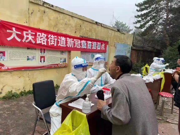 感人的事跡還有很多很多,醫(yī)院二十六病區(qū)護(hù)士孫立會,是一名今年年底就要退休的高年資護(hù)士,一直堅(jiān)守在臨床一線,當(dāng)聽到需要下社區(qū)支援采集核酸,積極報(bào)名主動提出上夜班崗,在晚上打車前往社區(qū)替換白班同事時(shí),出租車師傅聽說是去給市民采集核酸,下車時(shí)堅(jiān)決拒收車費(fèi);護(hù)理部護(hù)士長王爽也將年邁生病的母親托付給別人照看,全身心的投入到了核酸采集工作中;由于人手緊張,醫(yī)院行政后勤工作人員也都積極加入到了核酸采集工作當(dāng)中,短短幾天共派出近50名有醫(yī)護(hù)資質(zhì)的機(jī)關(guān)干部前往社區(qū)為群眾采集核酸。