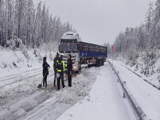 為有效消除降雪對(duì)交通的影響,新林區(qū)以雪為令,10月10日凌晨,新林區(qū)交通運(yùn)輸局派出4輛清雪車、2輛保障車,迅速開(kāi)展路面清雪工作,經(jīng)過(guò)數(shù)個(gè)小時(shí)的不間斷作業(yè),G111國(guó)道、林碧公路路面積雪得到了有效清理。