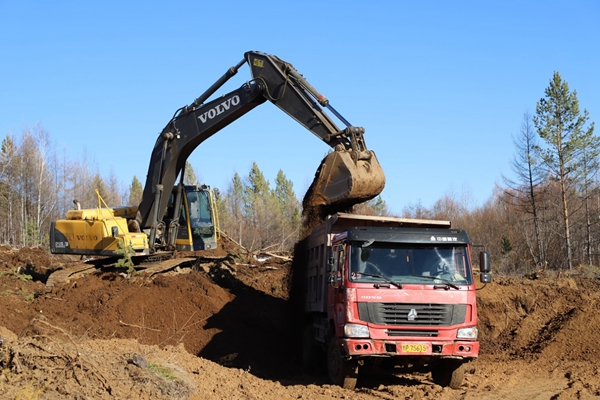 圖為阿木爾林業(yè)局多種經(jīng)營(yíng)公司在取料場(chǎng)裝載砂石料,養(yǎng)護(hù)1—4線