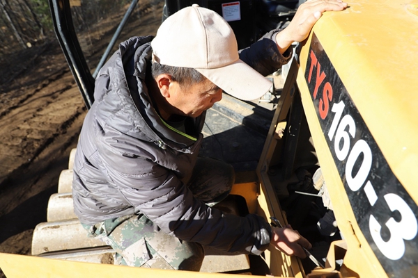 圖為阿木爾林業(yè)局多種經(jīng)營(yíng)公司大推司機(jī)賀傳路保養(yǎng)車輛