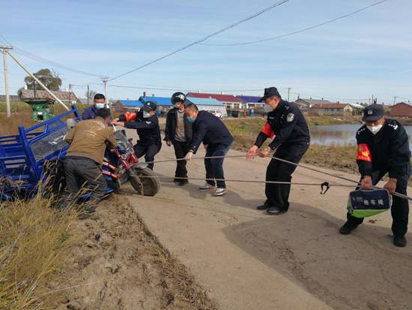 巴彥縣出現(xiàn)疫情后,哈爾濱市公安局航運分局副局長井立軍帶領41名來自航運分局、地鐵分局、禁毒支隊的戰(zhàn)友們,在巴彥農村疫情災區(qū)走鄉(xiāng)鎮(zhèn)進村屯、查卡點看秋收,用頑強的意志、過硬的膽識,漂亮地打贏了一場巴彥農村疫情防控阻擊戰(zhàn)。截至目前,哈爾濱市公安局駐巴彥農村防疫工作組共協(xié)助維護核酸檢測點秩序3028處、檢查村屯卡點2015處、整改存在管理問題村屯卡點103處、整改存在安全隱患居家隔離點437戶,勸阻私自出門秋收等人員862人,監(jiān)督處置有害垃圾、病死牲畜等事件33起,為全面阻斷巴彥農村疫情蔓延奠定了堅實基礎。