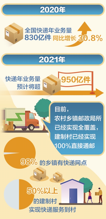 伴隨著農村電商的蓬勃發(fā)展和農村市場潛力的激活,主要快遞品牌不斷從“下鄉(xiāng)”向“進村”邁進。目前,農村鄉(xiāng)鎮(zhèn)郵政局所已實現(xiàn)全覆蓋,建制村實現(xiàn)100%直接通郵;98%的鄉(xiāng)鎮(zhèn)有快遞網(wǎng)點,一半以上的建制村實現(xiàn)快遞服務到村。