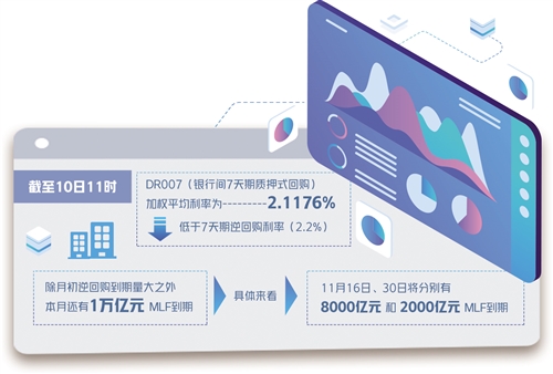 數(shù)據(jù)顯示,11月1日至5日,共計(jì)1萬(wàn)億元規(guī)模的逆回購(gòu)陸續(xù)到期。除月初逆回購(gòu)到期量大之外,本月還有1萬(wàn)億元MLF到期,為今年以來(lái)最高值。具體來(lái)看,11月16日、30日將分別有8000億元和2000億元MLF到期。