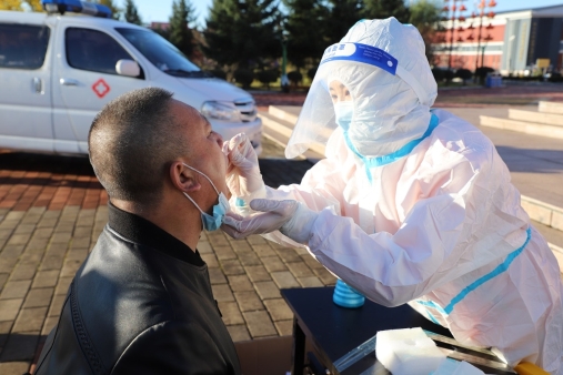 圖為阿木爾林業(yè)局正在開展全員核酸檢測(王力/攝)