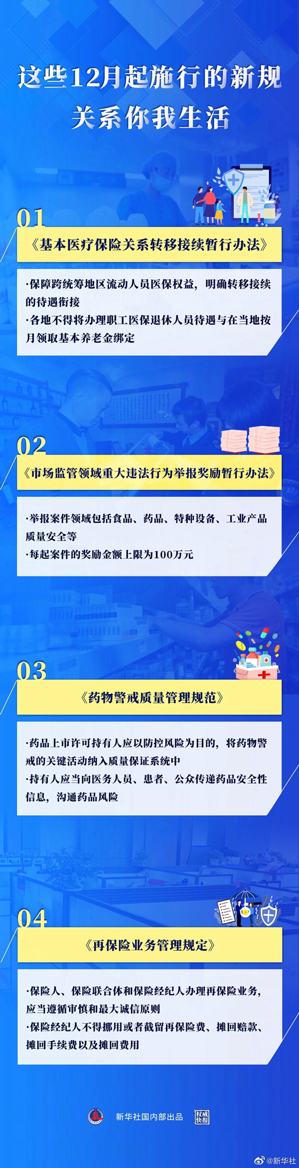 明確醫(yī)保關(guān)系的轉(zhuǎn)移接續(xù)辦法,讓跨統(tǒng)籌地區(qū)流動(dòng)人員的醫(yī)保權(quán)益更有保障;舉報(bào)市場監(jiān)管領(lǐng)域重大違法行為可獲獎(jiǎng)勵(lì),每起案件的獎(jiǎng)勵(lì)金額上限為100萬元;進(jìn)一步完善藥物警戒質(zhì)量管理規(guī)范,強(qiáng)化藥品上市許可持有人的安全監(jiān)管責(zé)任……戳大圖,哪條你最期待?(新華社記者白陽 海報(bào)設(shè)計(jì)張晨光)