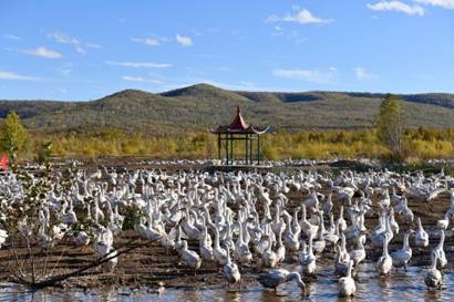 新林林業(yè)局依托當(dāng)?shù)厮葚S美的生態(tài)環(huán)境優(yōu)勢,扶持開展“生態(tài)鵝”養(yǎng)殖項(xiàng)目,為職工開拓了增收致富的新途徑(崔紅霞 攝)