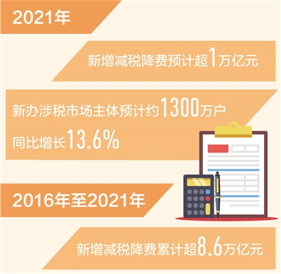 “2021年,稅務(wù)部門統(tǒng)籌推進(jìn)減稅降費(fèi)和組織收入,圓滿完成預(yù)算確定的收入任務(wù),更好激發(fā)市場主體活力、保障國家財(cái)力,全年新增減稅降費(fèi)預(yù)計(jì)超1萬億元?!眹叶悇?wù)總局主要負(fù)責(zé)同志在近日召開的全國稅務(wù)工作會(huì)議上表示,2016年至2021年新增減稅降費(fèi)累計(jì)超8.6萬億元,宏觀稅負(fù)由2012年的18.7%預(yù)計(jì)降至2021年的15.2%左右。2021年以來,減稅降費(fèi)政策繼續(xù)發(fā)力,助企減負(fù)紓困取得積極成效。