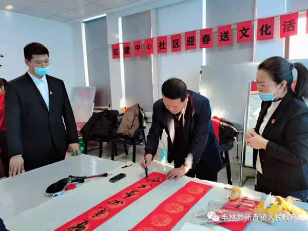 據(jù)了解,志愿服務(wù)活動旨在深入學(xué)習(xí)和貫徹黨的十九屆六中全會精神、市委十三次黨代會和縣委全會精神,歌頌和贊美我們偉大的黨100年來所取得的輝煌成就,以及在豐林縣委新一屆領(lǐng)導(dǎo)班子率領(lǐng)下,帶領(lǐng)全縣人民高舉習(xí)近平新時代中國特色社會主義思想偉大旗幟,“奮斗新時代·開創(chuàng)新豐林”美好愿景。此次活動,書寫春聯(lián)和福字有200幅,為社區(qū)廣大居民群眾送去新春的美好祝福,社區(qū)志愿者們把寫好的春聯(lián)送到轄區(qū)老黨員、居民家中,也把熱愛生活、奮發(fā)向上的“精氣神”送進(jìn)了千家萬戶。