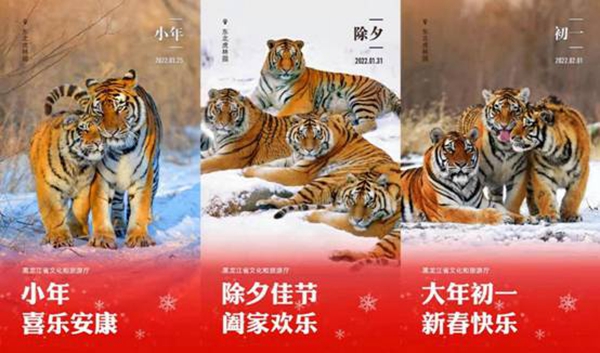 2022年是農(nóng)歷壬寅虎年,黑龍江省文旅廳適時(shí)提出“黑龍江——東北虎的故鄉(xiāng)”、“虎年就來(lái)黑龍江”等宣傳口號(hào),通過(guò)系列海報(bào)、趣味表情包、互動(dòng)H5、動(dòng)漫短視頻、創(chuàng)意長(zhǎng)圖等多種方式宣傳推廣冬季旅游產(chǎn)品。