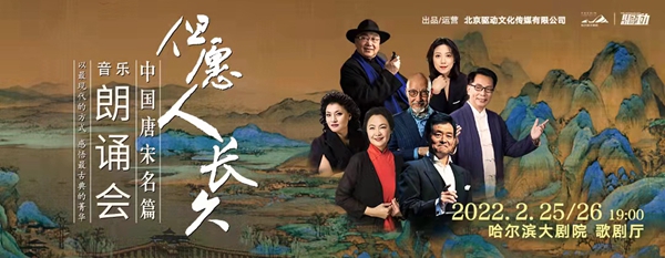 2月25、26日,“但愿人長久——中國唐宋名篇音樂朗誦會”將以全新陣容再度亮相冰城舞臺,由指揮家高嵩執(zhí)棒,黑龍江省歌舞劇院有限公司交響樂團、民族樂團、合唱團共同呈現(xiàn),朗誦表演藝術(shù)家濮存昕、喬榛、張晶、張宏聯(lián)袂著名歌唱家楊小勇、么紅,以詩樂相伴的方式再現(xiàn)盛唐兩宋的詩詞歌賦。