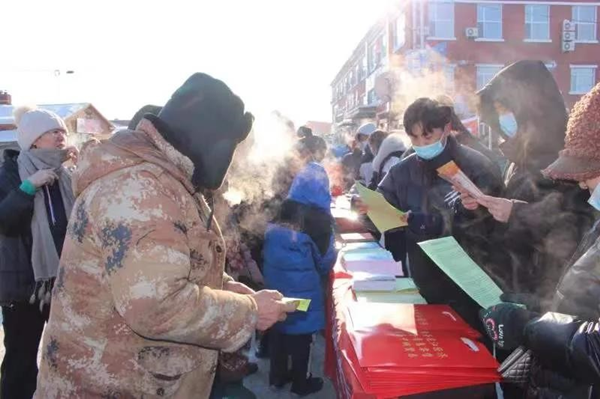 黑龍江經(jīng)濟(jì)網(wǎng)訊( 劉妍 王曉微 記者仉慶華)日前,嘉蔭縣烏云鎮(zhèn)的中心街道上,村民們緊緊環(huán)繞在“除陋習(xí) 樹新風(fēng)”主題宣傳臺周圍,參加由嘉蔭縣新時代文明實踐中心組織的迎新春綜合宣傳活動。活動現(xiàn)場,工作人員圍繞黨的十九屆六中全會精神、鄉(xiāng)風(fēng)文明、疫情防控等內(nèi)容開展全方位宣傳,參加活動的群眾認(rèn)真聆聽,時而交流談?wù)摗r而低頭深思,現(xiàn)場其樂融融,一派熱鬧景象。