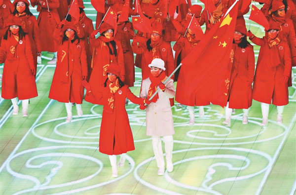 中國代表團旗手高亭宇(右)。 新華社記者 徐子鑒攝