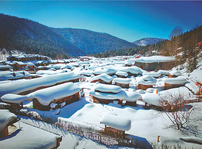 屋頂積雪如流淌的奶油,如玉的白雪在大紅燈籠的照耀下宛如松軟的雪蛋糕……被冰雪裝點的中國雪鄉(xiāng),是極具雪韻美景的地方。更令人叫絕的是,因貝加爾湖冷空氣與日本海暖濕氣流的頻繁交匯以及特殊地形影響,這份神奇的雪景存在的時間特別長,每年的積雪期長達(dá)7個月,是中國雪量最大、雪粘稠度最高的地方。