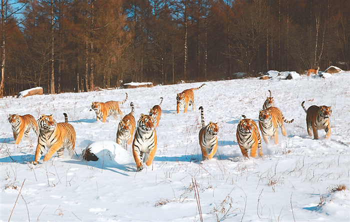 在這片冰天雪地之中,還有非常可愛的動物。在東北虎林園和橫道東北虎林園中,雪地“跑酷”的東北虎盡展百獸之王的颯爽雄姿;齊齊哈爾扎龍國家級自然保護(hù)區(qū)的丹頂鶴,雪地起舞別有風(fēng)情;亞布力熊貓館中翻滾嬉鬧的佑佑和思嘉萌趣可愛;哈爾濱極地公園的網(wǎng)紅“淘學(xué)企鵝”,在雪地散步憨態(tài)可掬;野生“狍子君”在大興安嶺的林中穿梭,聽到聲音還會好奇的回頭……這些龍江冬日里的小可愛們,活力十足,讓人心生喜愛。