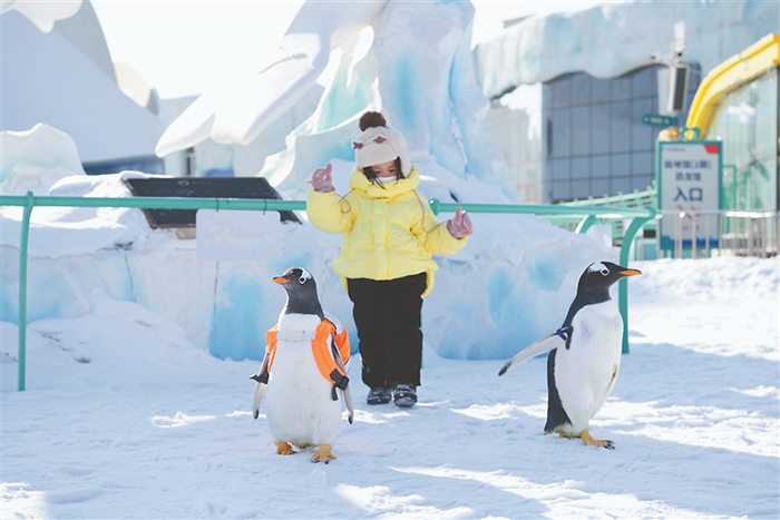 哈爾濱極地公園“淘學(xué)企鵝”。