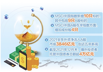 與此同時,境外投資者持有中國債券規(guī)模也創(chuàng)下歷史新高。數(shù)據(jù)顯示,截至2021年12月末,境外投資者托管中國債券總額超4萬億元。