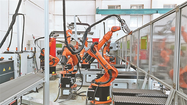 齊齊哈爾黑龍國際冰雪裝備有限公司生產(chǎn)車間,焊接機器人大幅度提高生產(chǎn)效率。