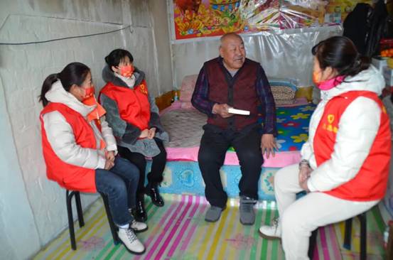 呼中林業(yè)局呼源林場志愿者與獨居老人聊家常(孫樹輝攝)