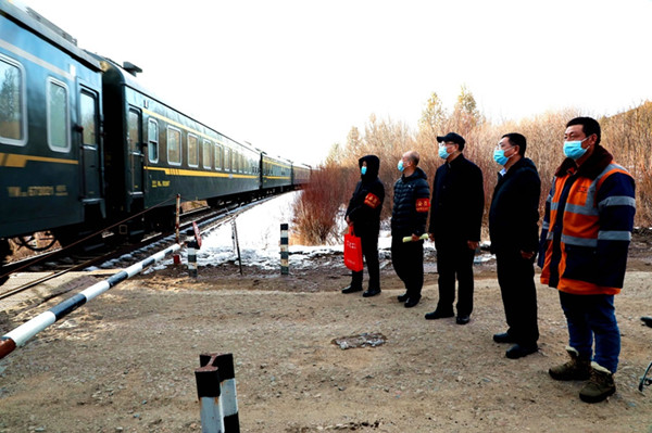 阿木爾林業(yè)局護路人員守護旅客列車安全通過(王力 攝)