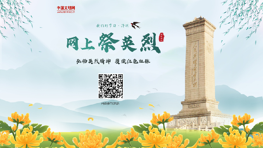 “英雄是民族最閃亮的坐標(biāo)?!睘榱擞肋h(yuǎn)銘記為民族獨(dú)立、人民解放和國(guó)家富強(qiáng)、人民幸福作出巨大貢獻(xiàn)和犧牲的英雄烈士,在全社會(huì)營(yíng)造崇尚英烈、緬懷英烈、學(xué)習(xí)英烈、捍衛(wèi)英烈的濃厚氛圍,凝聚奮進(jìn)新征程、建功新時(shí)代的強(qiáng)大力量,4月2日至6日,中央文明辦三局、中國(guó)文明網(wǎng)聯(lián)合開展“弘揚(yáng)英烈精神 賡續(xù)紅色血脈——2022網(wǎng)上祭英烈”網(wǎng)絡(luò)文明傳播活動(dòng)。