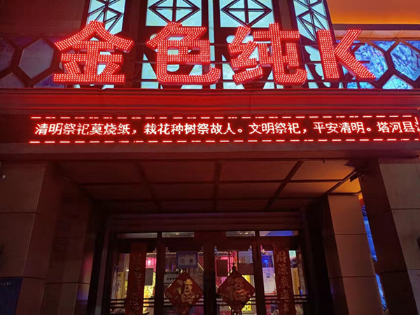 宣傳活動(dòng)中,塔河縣消防救援大隊(duì)緊密結(jié)合轄區(qū)工作實(shí)際,充分利用LED顯示屏具有宣傳效果好、時(shí)間不受限、受眾面廣等特點(diǎn),播放消防宣傳公益廣告和消防標(biāo)語(yǔ)滾動(dòng)字幕。各重點(diǎn)單位在播放本單位信息的同時(shí),將消防知識(shí)作為一項(xiàng)必播內(nèi)容,進(jìn)行全天候、不間斷播放,塔河縣消防救援大隊(duì)還定期對(duì)此項(xiàng)工作進(jìn)行督導(dǎo)檢查,確保播出頻次和播出數(shù)量達(dá)到宣傳效果,使廣大市民通過這種快捷、靈活的宣傳方式,隨時(shí)隨地觀看到主題鮮明、寓教于樂的消防知識(shí)宣傳。