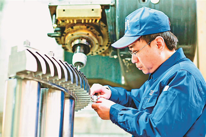 近日,記者推開哈電汽輪機數(shù)控加工中心大門,嘈雜的機器嗡鳴聲瞬間貫入耳中,董禮濤正全神貫注盯著加工件。