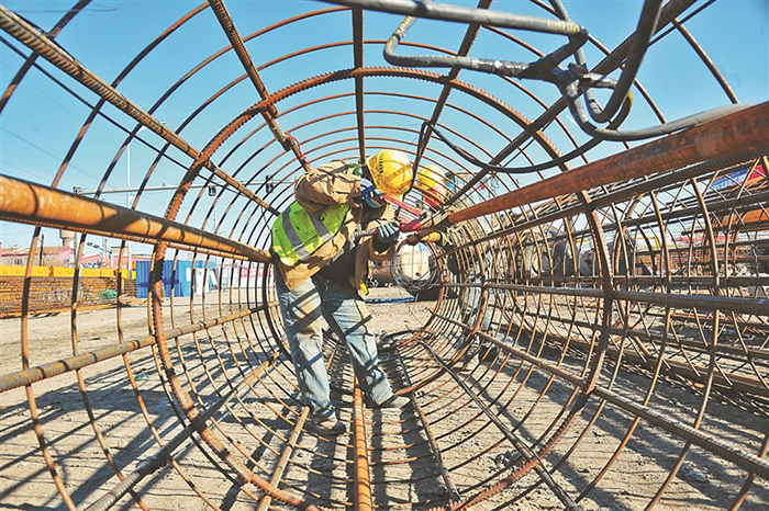 焊花飛濺、工程車來(lái)回穿梭……走進(jìn)省級(jí)重點(diǎn)項(xiàng)目——北門(mén)街高架橋工程建設(shè)現(xiàn)場(chǎng),施工人員有的綁鋼筋,有的輔助機(jī)器打樁,鉆頭飛轉(zhuǎn),施工熱火朝天。