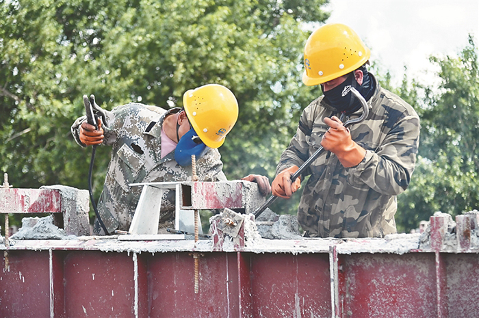 身處建設(shè)現(xiàn)場(chǎng),記者聽(tīng)到最美的聲音就是各種機(jī)器的嗡鳴。順著電鉆的嗡嗡聲,記者看向一棟3層建筑。劉明軍介紹,這棟建筑是身兼展示功能的辦公樓,正在進(jìn)行外幕墻裝飾。與之相鄰的二層建筑上,工人們正忙著進(jìn)行二次結(jié)構(gòu)砌筑。