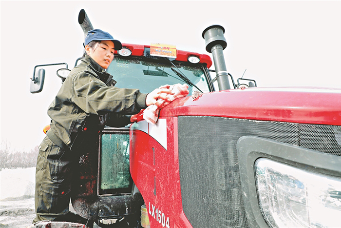 常年的田間勞作,使杜春燕手上布滿了一層層老繭。“老繭是農(nóng)機人的獎章?!倍糯貉嘈χf。能吃苦、肯鉆研、愛拼搏、多奉獻,這是她理解的北大荒精神。