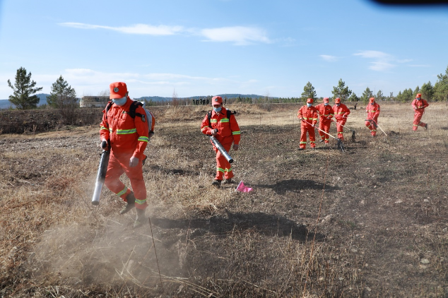 阿木爾林業(yè)局紅旗林場舉辦撲火技能競賽活動,防火專業(yè)隊隊員模擬實戰(zhàn)演練“一點兩面、分兵合圍”戰(zhàn)術(王力 攝)