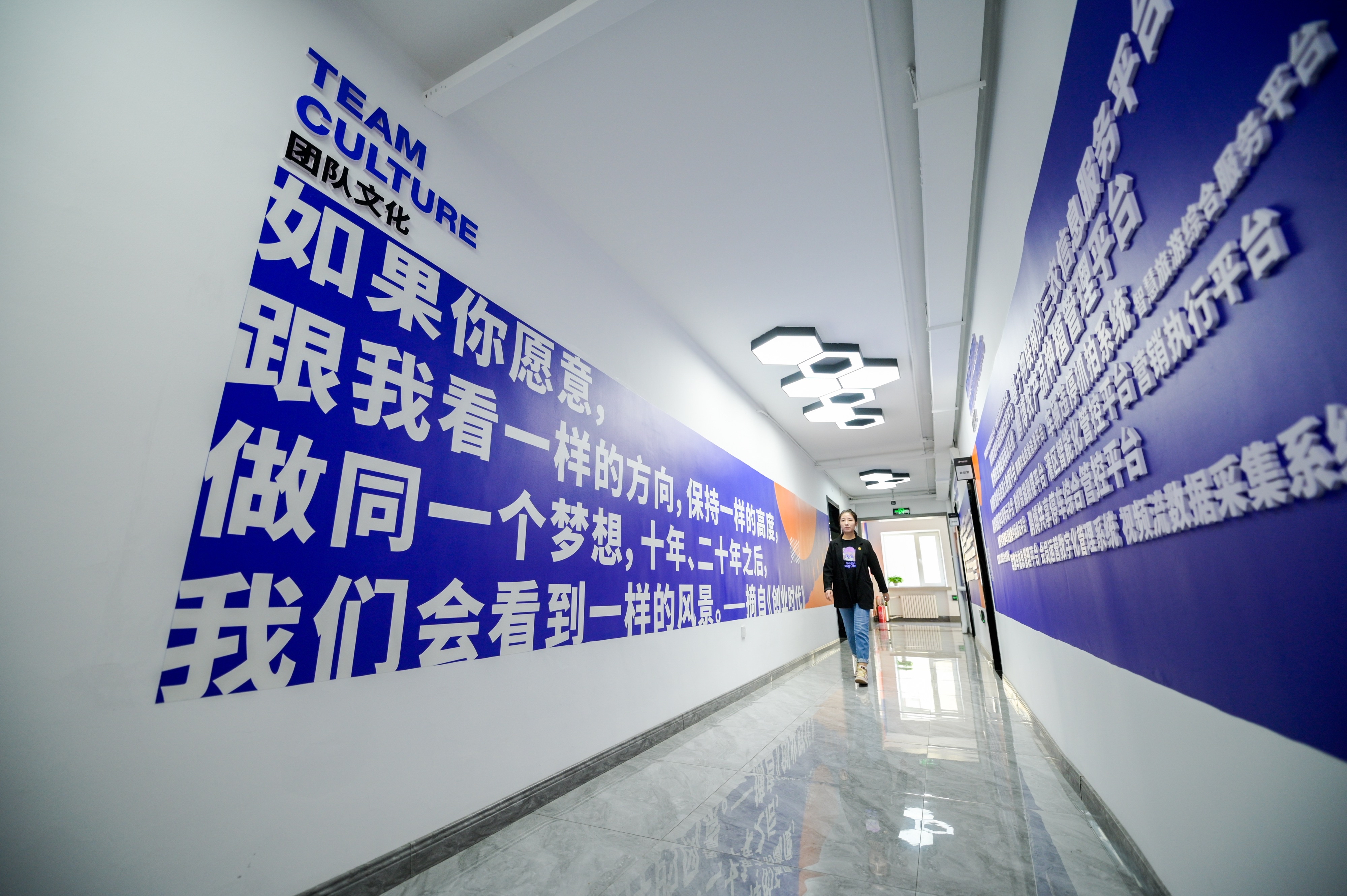 “如果你愿意,跟我看一樣的方向,保持一樣的高度,做同一個(gè)夢想,十年、二十年之后,我們會(huì)看到一樣的風(fēng)景。”“讓工作和生活更智能”……走進(jìn)鵬博集團(tuán),隨處可見勵(lì)志標(biāo)語,年輕的員工們正滿懷熱情地在電腦前敲擊著鍵盤。
