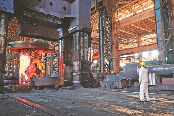 在中國一重集團有限公司,工人在車間內(nèi)忙碌(5月19日攝)。 新華社記者 唐鐵富攝