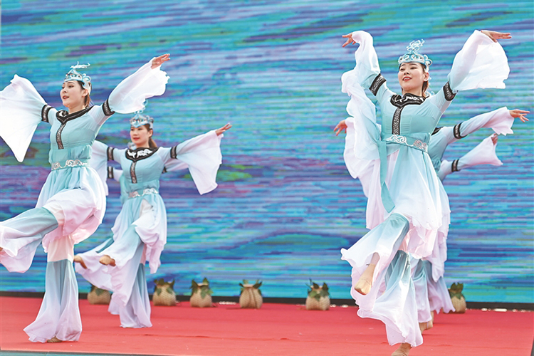 啟動儀式后的赫哲族專場演出。黑龍江日報全媒體記者 荊天旭攝