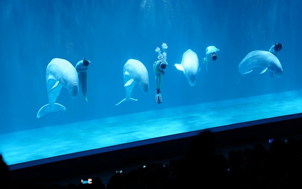 2009年,哈爾濱極地公園首推極地白鯨水下表演,歷時(shí)13年的時(shí)間,“來哈爾濱·看白鯨表演”已經(jīng)成為全國(guó)游客心馳神往的旅游節(jié)目,而表演中經(jīng)典的“海洋之心”不僅獲得了原創(chuàng)版權(quán),也成為了哈爾濱一張具有浪漫色彩的文旅名片,獲得國(guó)內(nèi)、國(guó)際主流媒體持續(xù)十余年的關(guān)注。2021年5月,三只可愛的極地白鯨創(chuàng)造的“三鯨開泰”首次亮相;現(xiàn)在,哈爾濱極地公園的白鯨家族推出“四鯨巡游”、“四鯨祈?!钡雀唠y度表演,再一次創(chuàng)造了經(jīng)典。