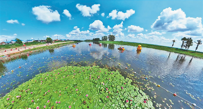 日前,在黑河市愛輝區(qū)張地營子鄉(xiāng)泡子沿村的塞北荷塘,上千朵有著“花中睡美人”之稱的睡蓮競相綻放,吸引了絡(luò)繹不絕的游客前來打卡游玩、觀賞采風(fēng)。小小睡蓮不僅讓這里成為黑河市民納涼休閑的好去處,還成為了當?shù)卮迕裰赂坏摹敖?jīng)濟花”。